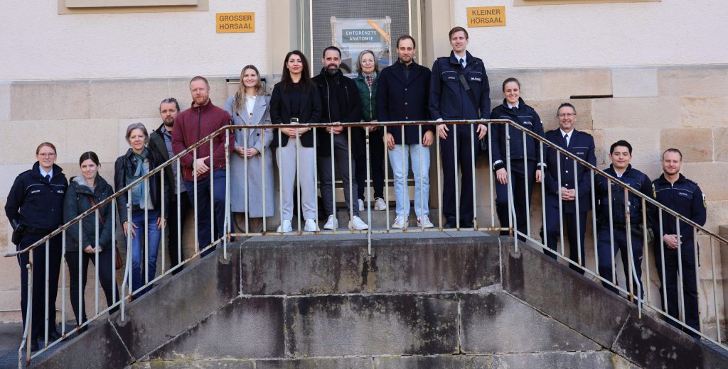 Bevor die Kooperationsvereinbarung von Polizeipräsident Udo Vogel und Benigna Schönhagen unterzeichnet wurde, nahmen rund 15 Polizist*innen an einer Führung durch die Ausstellung „Entgrenzte Anatomie“ teil. Das Interesse war sehr groß und der Polizeipräsident signalisierte umfangreiche Unterstützungsbereitschaft, um die Sichtbarkeit des Vereins zu erhöhen und weitere Unterstützer:innen zu finden.
